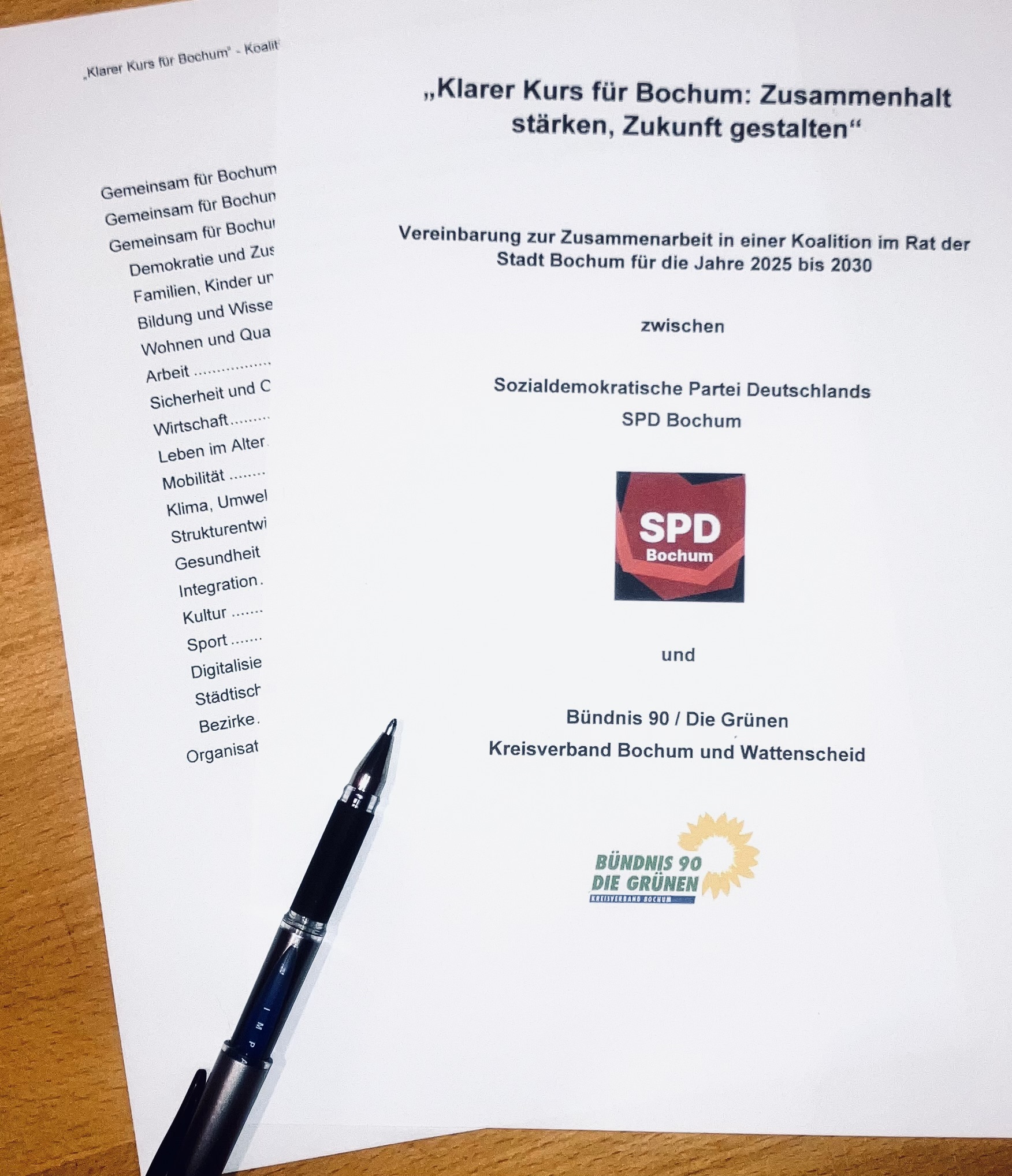 Hier die Vereinbarung zum Herunterladen: Koalitionsvereinbarung SPD GRÜNE Bochum 2025