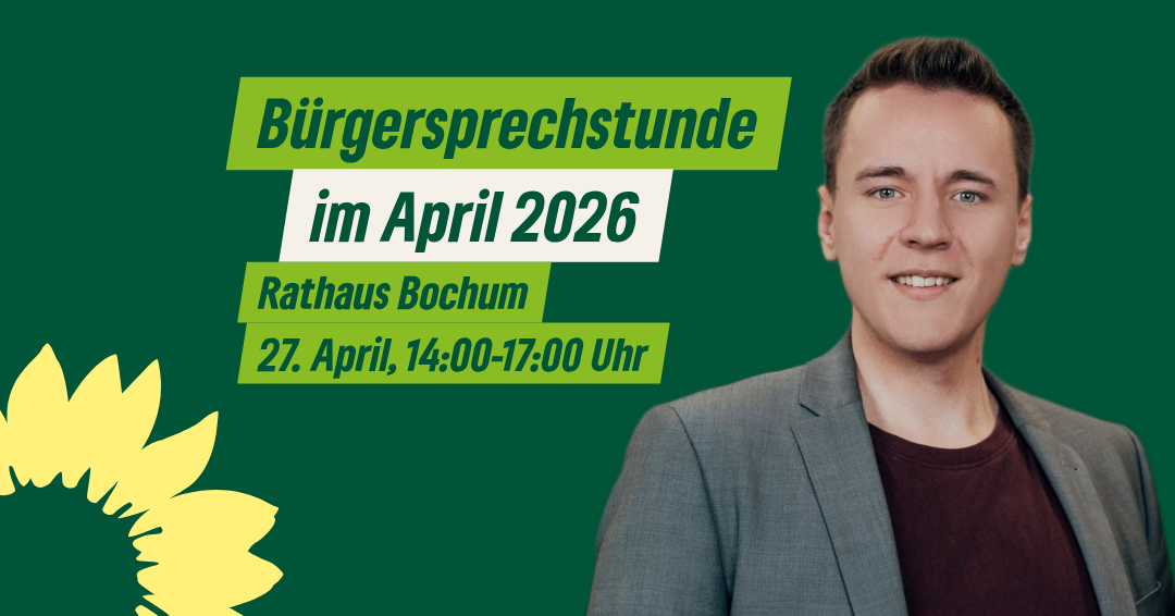 Als Mitglied des Bochumer Stadtrates biete ich zweimal im Monat eine offene Bürgersprechstunde👥 an – jeweils einmal in Stiepel (in den Räumlichkeiten der Guten Stube, Kemnader Straße 309) und einmal im Bochumer Rathaus (Raum 068).