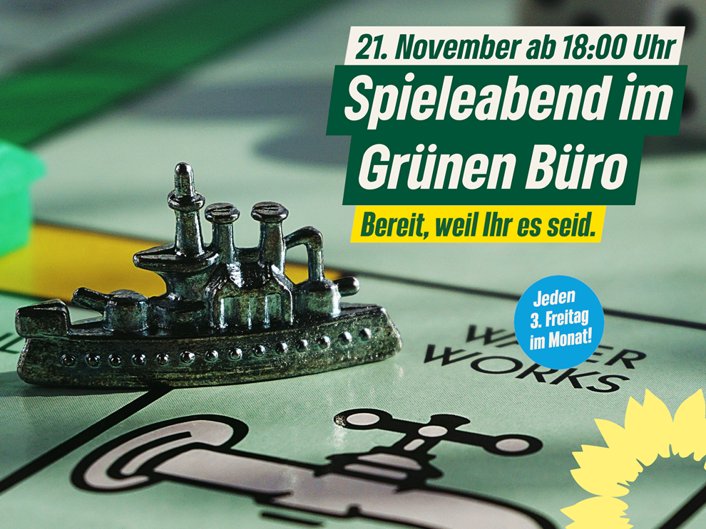 Abseits des politischen Tagesgeschäfts spielen wir in lockerer Runde einen bunten Mix aus Gesellschaftsspielen. Los geht es wie immer um 18.00 Uhr im Grünen Büro in der Diekampstraße 37 (EG).